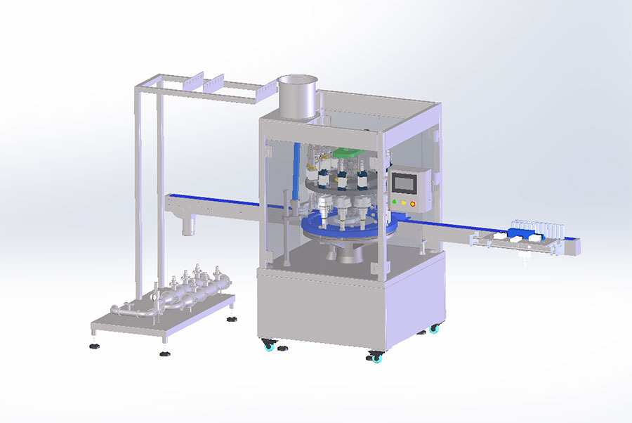產(chǎn)品描述設(shè)備如下圖1: 此產(chǎn)線配置產(chǎn)品有(從前端到后端):回轉(zhuǎn)式高速上閥機(jī)組、離心式高速理閥機(jī)、供閥提升機(jī)、6工位高精度計(jì)量缸&單組增壓泵、6頭封口&6頭充氣一體機(jī)(正壓防爆電箱和防爆人機(jī)界面)。具有操作簡單,人機(jī)交互友好,故障指示等優(yōu)點(diǎn)。便于排查和排除故障。2.各機(jī)組完成的生產(chǎn)工藝和性能參數(shù):A.回轉(zhuǎn)式高速上閥機(jī)組如圖2所示 圖2 型號(hào):SG-QGQW25-150HSF回轉(zhuǎn)式高速上閥機(jī),16工位回轉(zhuǎn)式高速上閥機(jī)汲取國外先進(jìn)設(shè)備技術(shù)研發(fā)而成,機(jī)組由閥門提升機(jī),轉(zhuǎn)盤式離心理閥機(jī)(此設(shè)備根據(jù)閥門形式非標(biāo)定制)和高速回轉(zhuǎn)上閥機(jī)構(gòu)成。工作原理為一個(gè)送閥軌道...